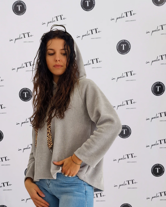 FELPA CON CAPPUCCIO EFFETTO VELLUTO & DETTAGLIO ANIMALIER "GRIGIO"
