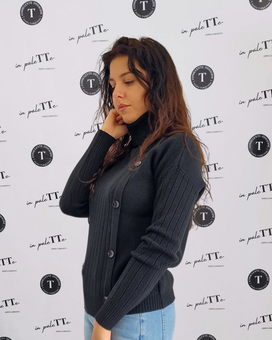 PULL COLLO ALTO A COSTE CON BOTTONI DECORATIVI