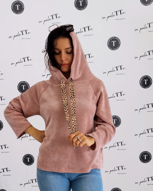 FELPA CON CAPPUCCIO EFFETTO VELLUTO & DETTAGLIO ANIMALIER "NOCCIOLA"