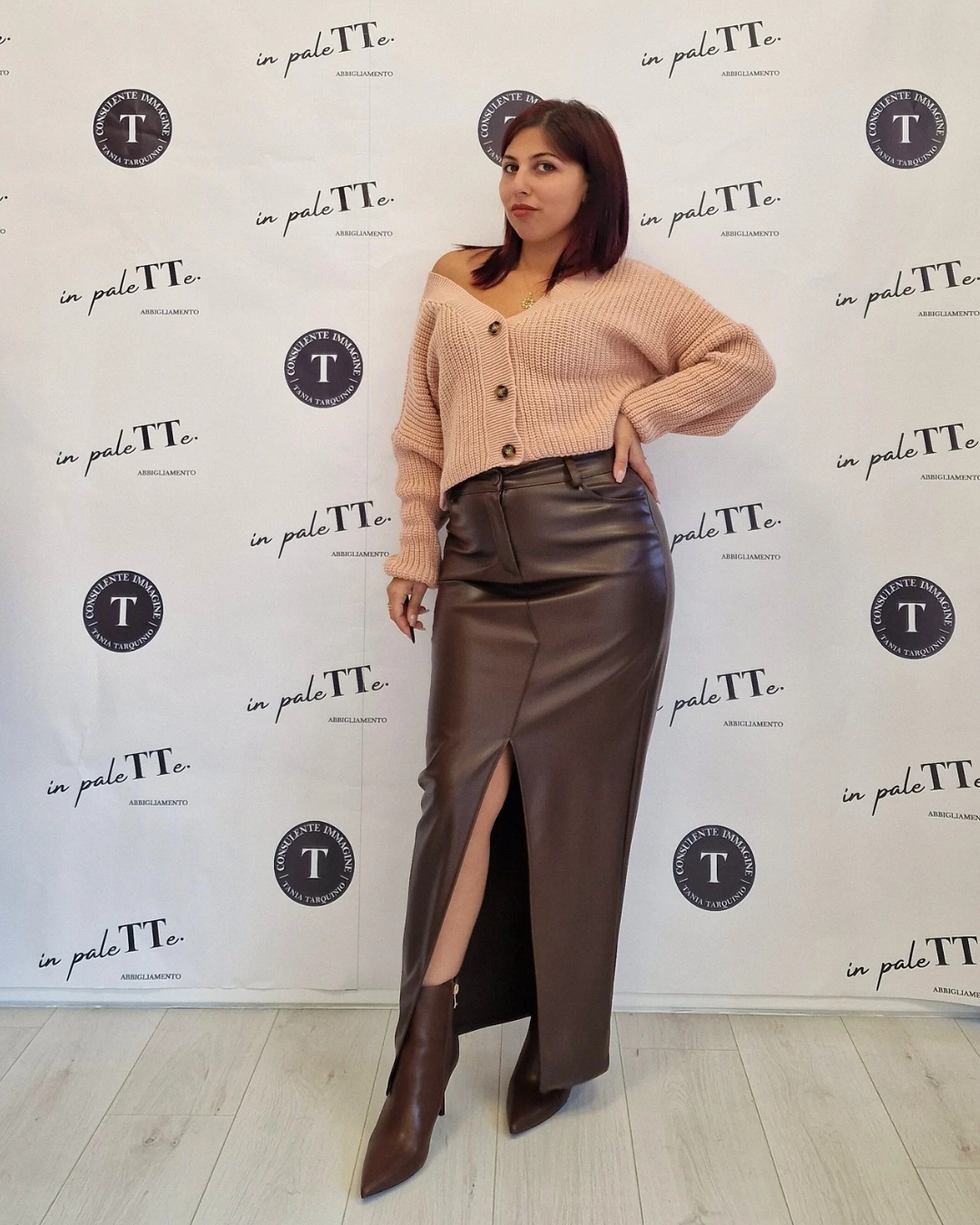 GONNA LUNGA MARRONE CON SPACCO in ecopelle